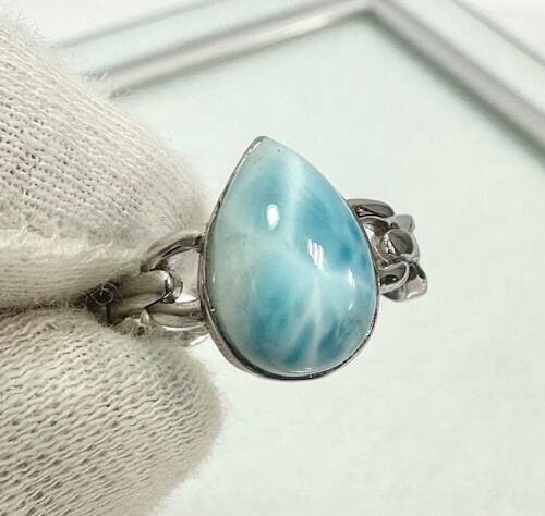 ラリマー リング カリブの宝石 ブルーペクトライト 指輪 天然石 パワーストーン サイズ調整可能 ヒーリングストーン 良質 しずく型