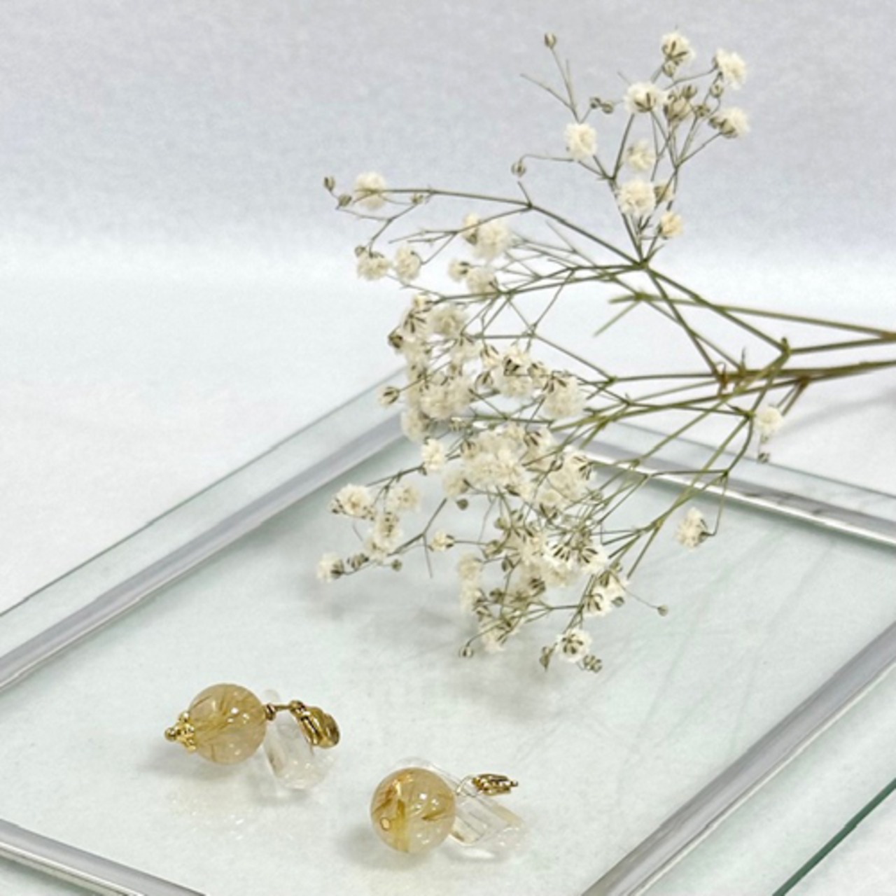 ルチルクォーツ下部分、ビーズキャップありのAかなしのBよりお選びくださいませ。