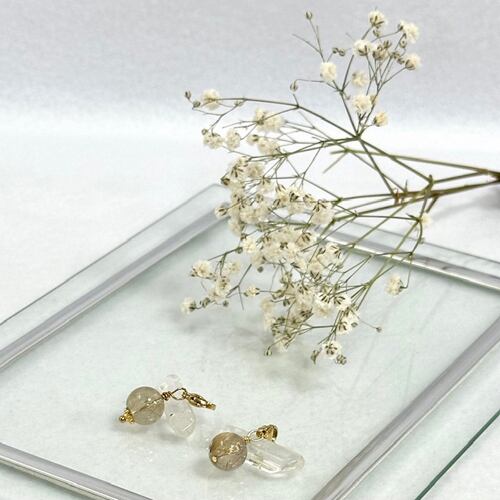 ルチルクォーツ下部分、ビーズキャップありのAかなしのBよりお選びくださいませ。