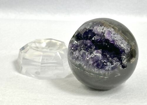 ウルグアイアメジスト ドゥルージー 丸玉 原石 アメジスト 台付き 天然石 パワーストーン ジオード アメジスト 笑口 ウルグアイ産 約62ミリ 2月誕生石
