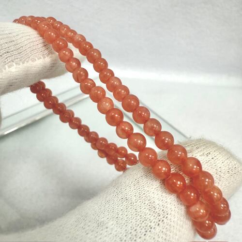 今回は粒サイズは小ぶりですが色味は赤みの美しいおしゃれにお付けできる4ミリサイズの2連ブレスレットの商品になります。