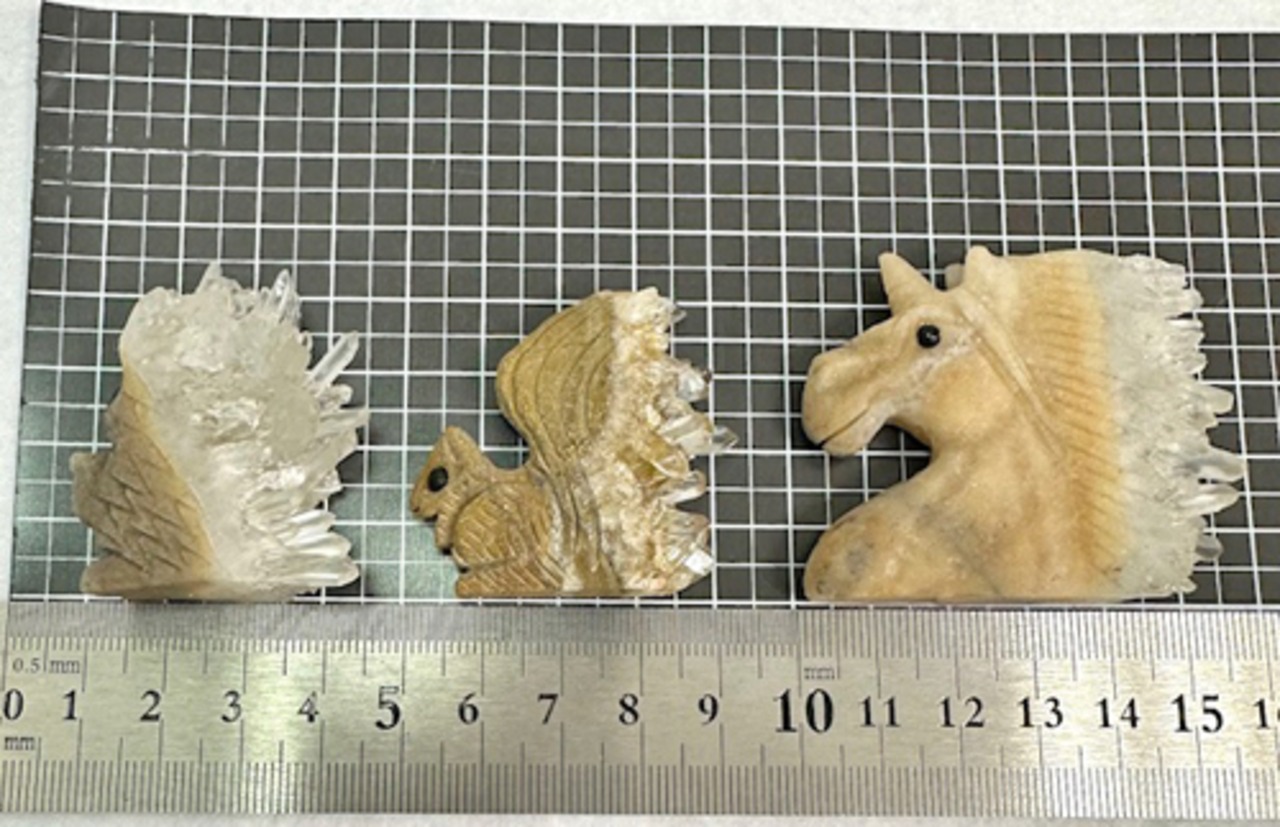 剣のように伸びる結晶を巧みに活かし、羽や尻尾に見立てたデザイン。味わいのある母岩をリスに一つひとつ丁寧に手彫りで彫刻されています♪