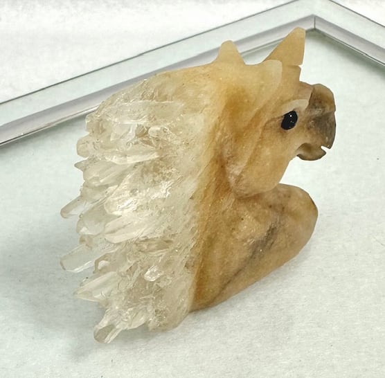 剣のように伸びる結晶を巧みに活かし、羽や尻尾に見立てたデザイン。味わいのある母岩をユニコーンに一つひとつ丁寧に手彫りで彫刻されています♪