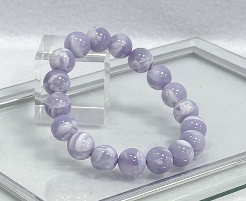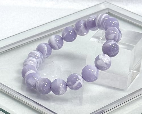 アメリカ産、約11〜11.5ミリ、水晶とパープルフローライトが混ざり合った天然石で白とパープルカラーのマーブル模様がなんとも言えない神秘性を宿しています