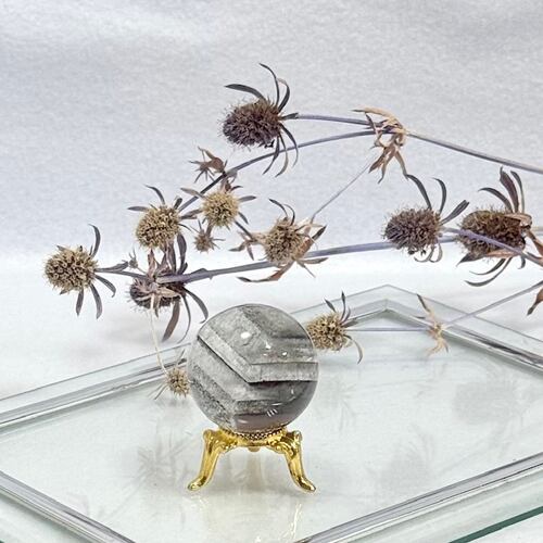ガーデンクォーツ スフィア グリーンファントム 水晶 丸玉 約31ミリ ファントム ガーデン水晶 天然石 パワーストーン 金属台付き