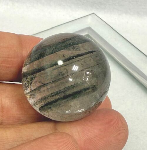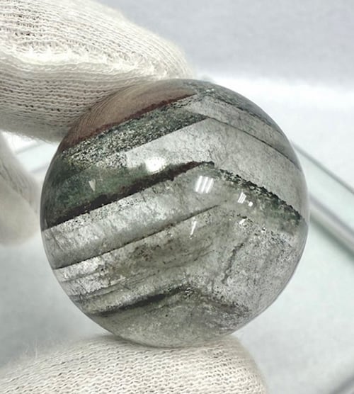 ブラジル産、約31ミリ、幾つものグリーンの山の層が伺えるガーデンクォーツ、グリーンファントムの丸玉です☆