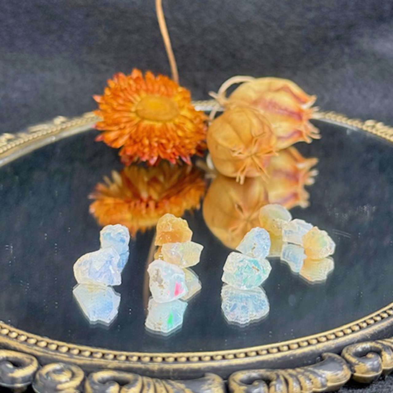 オパール:肌に潤いをもたらし、若々しさを保つ効果や恋愛に効果があると言われています。10月の誕生石