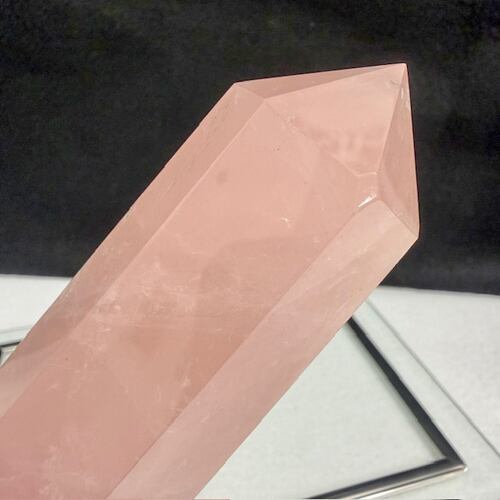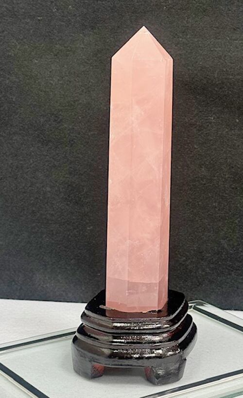 ローズクォーツ ポイント 木製台付き 置物 浄化 インテリア ピンク 水晶 天然石 パワーストーン マダガスカルローズクォーツ マダガスカル産 約200ミリ