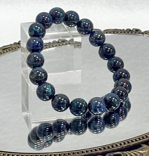 ペルー産、約10ミリ、ブルーグリーンの発色が美しくかっこいいクリソコラのブレスレットです☆