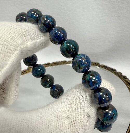 【 商品詳細 】◆商品コード PBR-547 ◆商品名 クリソコラ ブレスレット ペルー産 ◆アイテム ブレスレット ◆価格 ¥21,900- ◆サイズ 約10ミリ玉×19玉 / 内寸約16.0cm ◆備考 ペルー産