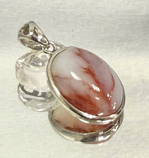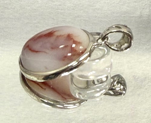 ややグレー味がかった落ち着いた色合いに赤珊瑚のような赤い不規則な模様、大変珍しいポルトガル・パナスケイラ産の瑪瑙ペンダントトップです☆