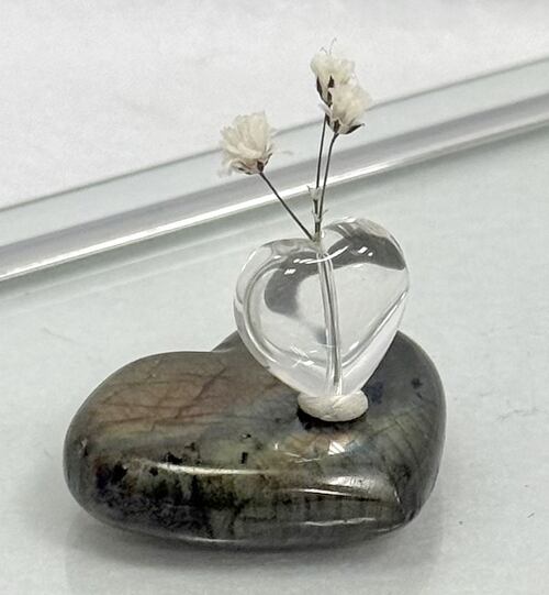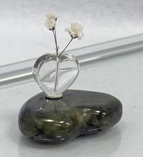 天然石 花 ドライフラワー パワーストーン ハート ラブラドライト 水晶 石toHANA 癒し インテリア カスミソウ