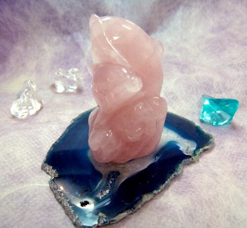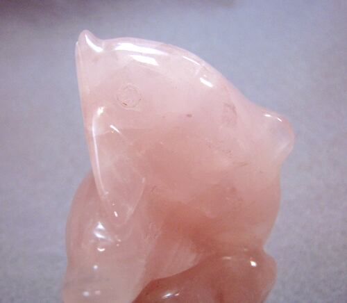 天然石ローズクォーツを使用したイルカの彫刻です。