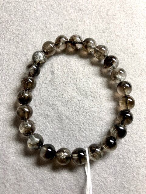 人気のスーパー7の渋いブラックスーパー7 ブレスレット 天然石 パワーストーン スーパー7 約8ミリ玉 マダガスカル産 スモーキークォーツ レピドクロサイト