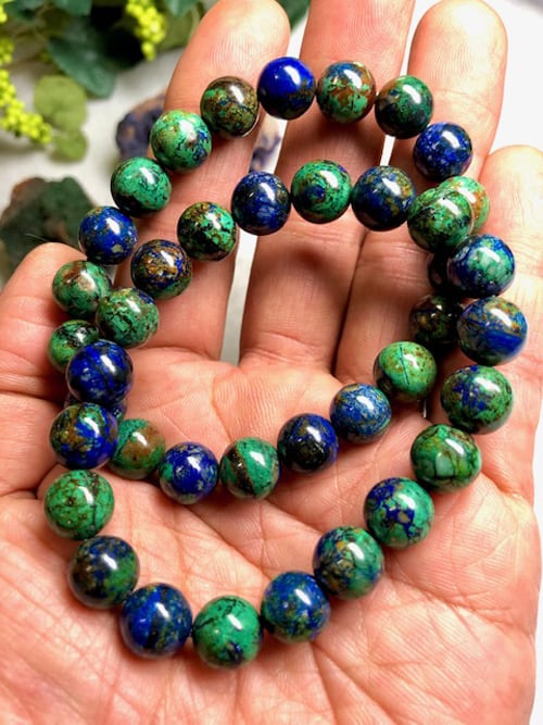 再入荷 アズライト ブレスレット 天然石 パワーストーン アズロマラカイト アズライトマラカイト 約10ミリ玉 神秘的 アリゾナ産