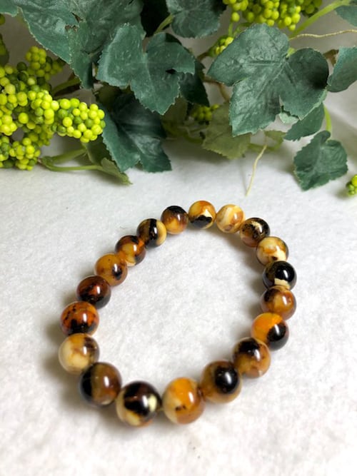 ロシア産のフラワーアンバー 天然 花こはくのブレスレット 琥珀 アンバー ブレスレット フラワーアンバー 天然 花琥珀 コハク 天然石 パワーストーン こはく 約10ミリ玉