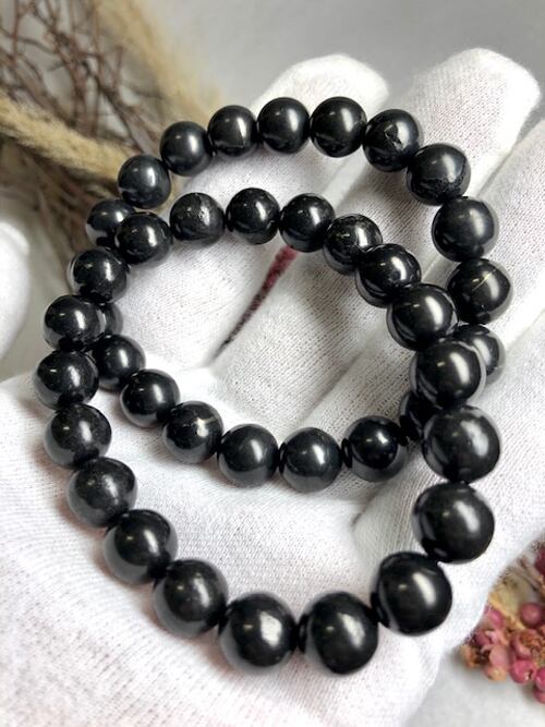 シュンガイト ブレスレット 約10ミリ玉 天然石 パワーストーン ロシア カレリア共和国産 天然フラーレン 含有 炭素鉱物 健康 癒し 美容