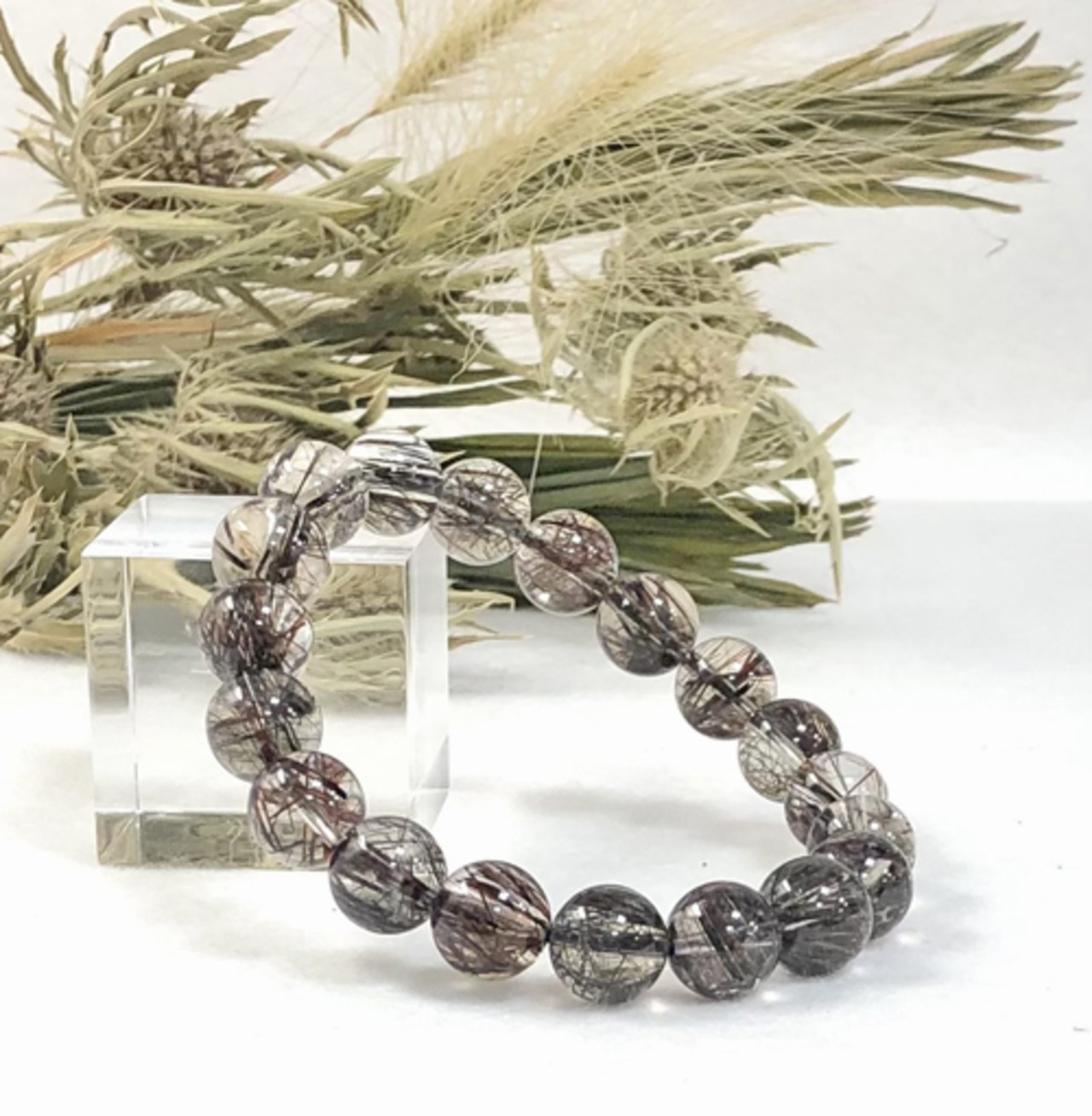 ブラックルチルクォーツ ブレスレット 約10ミリ 極太 ブラックタイチンルチルクォーツ リアルブラックルチル タイチンルチル 針水晶 天然石 パワーストーン