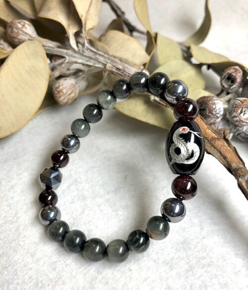 ブラックオニキスへびの銀彫り彫刻入りブレスレットです へび ブラックニキス 銀彫り 彫刻入り ブレスレット 白蛇 ガーネット テラヘルツ グレータイガーアイ 天然石 パワーストーン