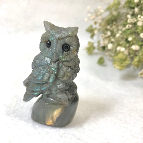 綺麗 神秘的 可愛い 癒しラブラドライト ふくろう 彫刻品 ふくろう ラブラドライト 彫刻品 置物 フクロウ 福朗 不苦労 天然石 パワーストーン 遊色効果 神秘的 シラー 癒し