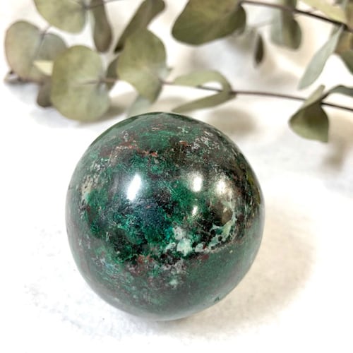 【 商品詳細 】◆商品コード PPO-245 ◆商品名 クリソコラ 丸玉 ◆アイテム 丸玉 アクリル台付き ◆価格 ¥21,840- ◆サイズ 約53ミリ玉 / 約300g ◆備考 *ペルー産 *クリソコラは非常にデリケートな結晶鉱物ですので取り扱いには充分にご注意くださいませ