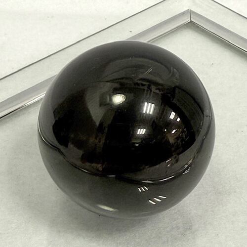 六条のスターとちらっとレインボーも伺える漆黒の天然黒水晶、モリオンの丸玉です☆