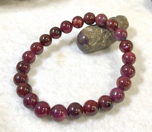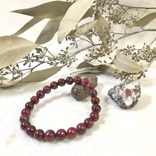 【 商品詳細 】◆商品コード PBR-363 ◆商品名 レッドパープルサファイア ブレスレット ◆アイテム ブレスレット ◆価格 ¥37,400- ◆サイズ 約8〜8.5mm玉×24個 内寸約16cm ◆備考 スリランカ産 *玉をはずして内径を小さくするサイズ調整、発送前1回限り無料にて対応致しておりますので ご希望ございましたらお気軽にコメント等にてお声かけくださいませ。*画像内の原石等はディスプレイで付属いたしません。
