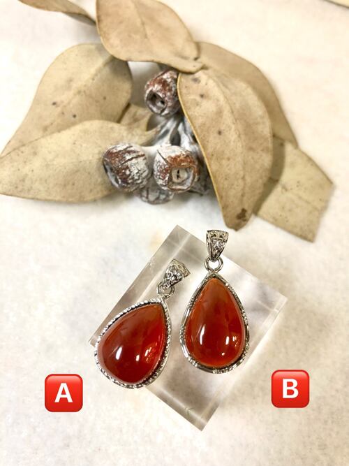 【 商品詳細 】◆商品コード PPT-224 ◆商品名 オレンジガーネット ◆アイテム シルバーペンダントトップ ◆価格 各¥13,200- ◆サイズ 全長 AB共に約29〜30mm(バチカン含む) ◆備考 ブラジル産 *チェーンは別売りになります。