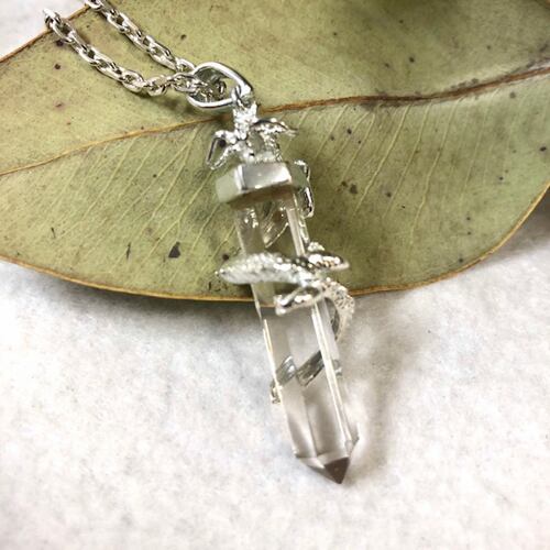龍巻き水晶 ペンダントトップ 天然石 パワーストーン 水晶 4月誕生石 シルバー 龍 クリスタル