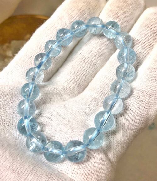 ブルートパーズ ブレスレット 約9.5〜10ミリ玉 天然石 パワーストーン 11月の誕生石 トパーズ 良質 瑞々しい 爽やか ブルー