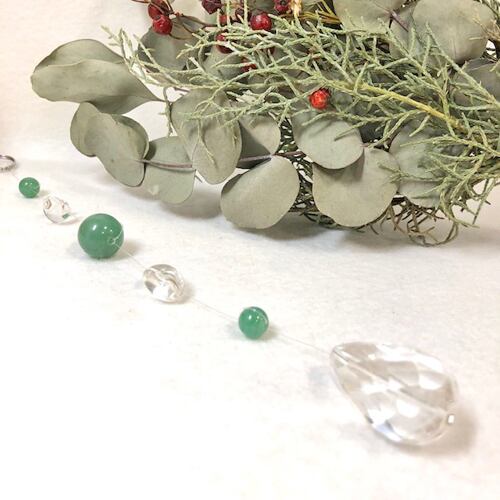 全長約240ミリ。 <いしことば>・水晶:全てを清め浄化し、より良い方向へと流れを転換させる。・アベンチュリン(グリーンクォーツァイト):魅力を引き出す。自己嫌悪を克服できる。 ///////////*ネコポスでの発送は3本までになります。4本以上ご注文の際は宅急便を選択下さいませ。4本以上をネコポスでご注文頂きました際は宅急便への変更手続き等が生じます。あらかじめご了承くださいませ。///////////////////*・゜☆゜・*:.。..。.:*゜:*:☆*・゜゜・*:.。<ご確認ください!>*ヤマト運輸 ネコポス便での発送について◎代引き不可ですのでクレジット・銀行振込等でのお支払いに限ります。◎時間指定は出来ません。◎ポスト投函になりますので ポストの形状によっては投函できない場合がございます。ご注意下さい。◎ネコポスはお届けまでに1〜3日のお時間がかかりますのでお急ぎのお客様は宅急便をご選択ください。◎宅急便とは違い、配送中の紛失や破損の保障はございません。※当店でも配送中の紛失・破損の保障はできかねますので十分ご検討の上、ご利用お願いします。◎他商品等との複数ご注文の際は、厚さ制限等があるためネコポス便で送れない場合もあります。 宅急便で送る事になることもありますのでご確認させていただきます。ご了承ください。