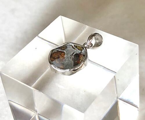 パラサイト 隕石 シルバー925 ペンダントトップ メテオライト 天然石 パワーストーン 石鉄隕石 ロシア産 六亡星 ダビデ 隕鉄 かんらん石 ペリドット