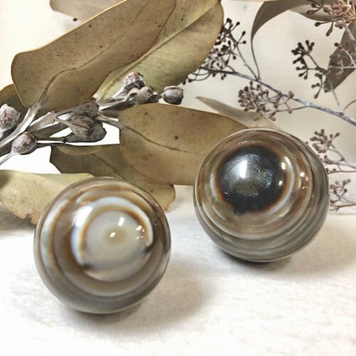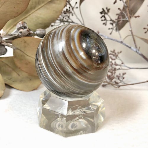 天眼石 丸玉 L アイアゲート 天然石 パワーストーン 瑪瑙 メノウ オニキス アゲート 縞瑪瑙 アクリル台付き 目玉模様