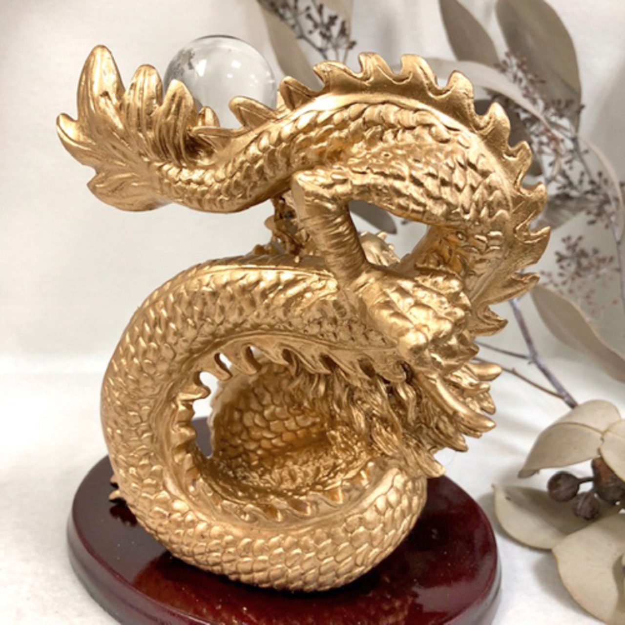 龍 丸玉台 置物 金の龍 金龍 天然石 パワーストーン ドラゴン 風水 風水龍 縁起物 オブジェ インテリアに ボールスタンド