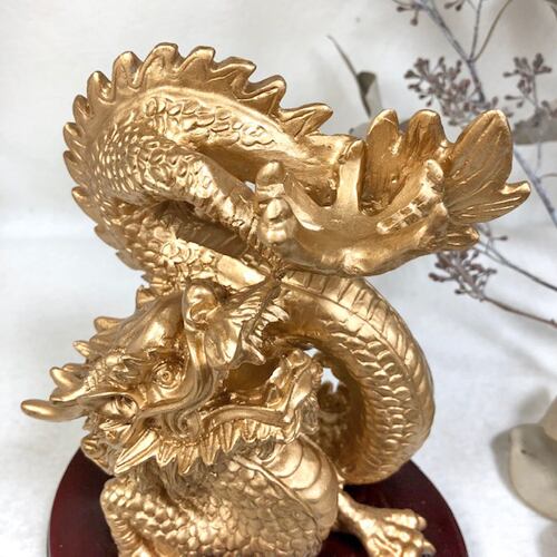 <商品詳細 > ◆商品コード POT-168 ◆商品名 金龍 置物 ◆アイテム 龍 置物 ◆価格 ¥19,800- ◆サイズ 約 高160×幅150×奥130ミリ ガラス玉 1個付き:直径 約29ミリ ◆備考 材質:ポリレジン(合成樹脂) *龍と敷き板は一体型です。*画像内の約29ミリ、ガラス玉が1個付属致します。*こちらの商品に天然石は使用、付属致しておりません。