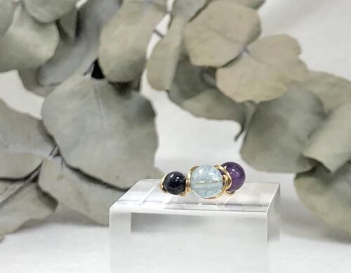 こちらは天然石が、ブルートパーズをトップにアメジストやサファイアを使用した1品です。