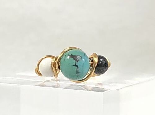 【 商品詳細 】◆商品コード KER-201 ◆商品名 ターコイズ イヤーカフ ◆アイテム イヤーカフ ◆価格 ¥1,680- ◆サイズ 約16.3×14.3ミリ 天然石サイズ: 中国産ターコイズ 約6ミリ×1、ブラックトルマリン 約4ミリ×1、マグネサイト 約4ミリ×1 材質:アーティスティックワイヤー(ノンターニッシュブラス)使用 ◆備考 *こちらはターコイズ、ブラックトルマリンなどを使用したタイプの商品ページになります。*画像内のその他商品はディスプレイで付属致しません。その他のデザインは別の商品ページになります。