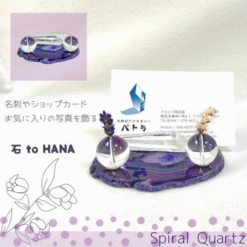 石 to HANA カードスタンド フォトスタンド 名刺立て ペトラ オリジナル商品 天然石 天然石 パワーストーン 20ミリ スパイラルクォーツ 螺旋 水晶 ドライフラワー
