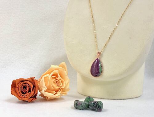 ルビーインゾイサイト シルバーペンダントトップ アニョライト 天然石 パワーストーン ルビー ゾイサイト ピンクゴールドカラー