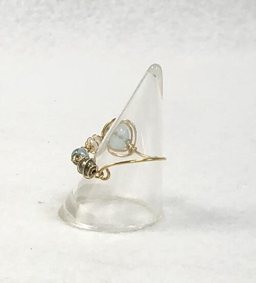 New Keiko オリジナル ハンドメイド アクセサリー リング 指輪 ブルートパーズ アクアオーラ レインボームーンストーン 天然石 パワーストーン フリーサイズ
