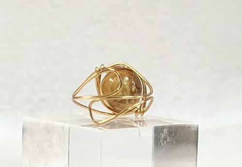 *商品はこちらで石を選りすぐってお送り致します。*商品お取り扱いの為にご一読お願いします。 <アーティスティックワイヤー> アメリカのArtistic wire社が製造しているジュエリー用の高品質金属ワイヤーです。ゴールド、ノンターニッシュシルバーは銅線芯に銀メッキ、金メッキ、更にその上から エナメル加工とポリウレタンのクリアコーティングが施されています。明るいメッキ色を長く楽しめます。 ノンターニッシュブラスは真鍮線にポリウレタンのクリアコーティングで真鍮そのものの色を長く楽しめるようになっています。(こちらは真鍮の為、銅線芯のものより少し硬さがあります。) しなやかで適度な柔らかさがありますので天然石を傷付けづに優しくラッピング(巻いたり包んだり)出来ることや、製作したリングやイヤーカフの着け心地が軽やかで痛くなりにくい点がアーティスティックワイヤーの良いところだと思い使用しています。反面、ご自身の指の力でフィットさせれる程の柔らかさですので手のひらで強く握りこむなどの強い圧力がかかると変形してしまいます。なるべく優しくお取り扱い下さいませ。お手入れの際は乾いた布で軽く拭いて下さい。 【 商品詳細 】◆商品コード KRG-510 ◆商品名 琥珀 リング ◆アイテム リング・指輪 ◆価格 ¥2,420- ◆仕様 サイズ:約9~16号ぐらいでサイズ調整可能 天然石サイズ:琥珀 約10ミリ×1 材質:アーティスティックワイヤー(ノンターニッシュブラス)使用 ◆備考 *こちらは翡翠を使用したタイプの商品ページになります。*画像内のその他商品はディスプレイで付属致しません。その他のデザインは別の商品ページになります。