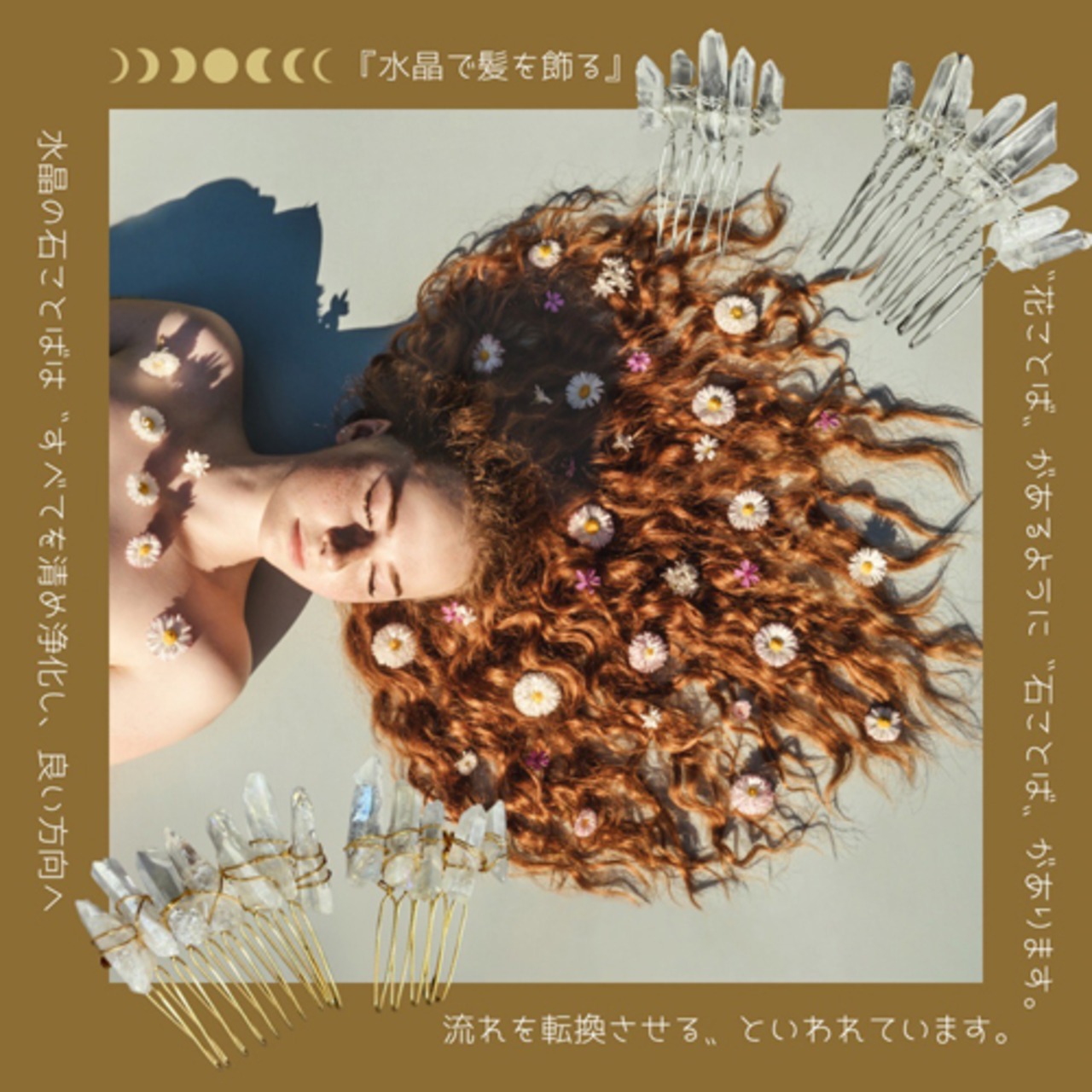 水晶やワイヤーが髪に