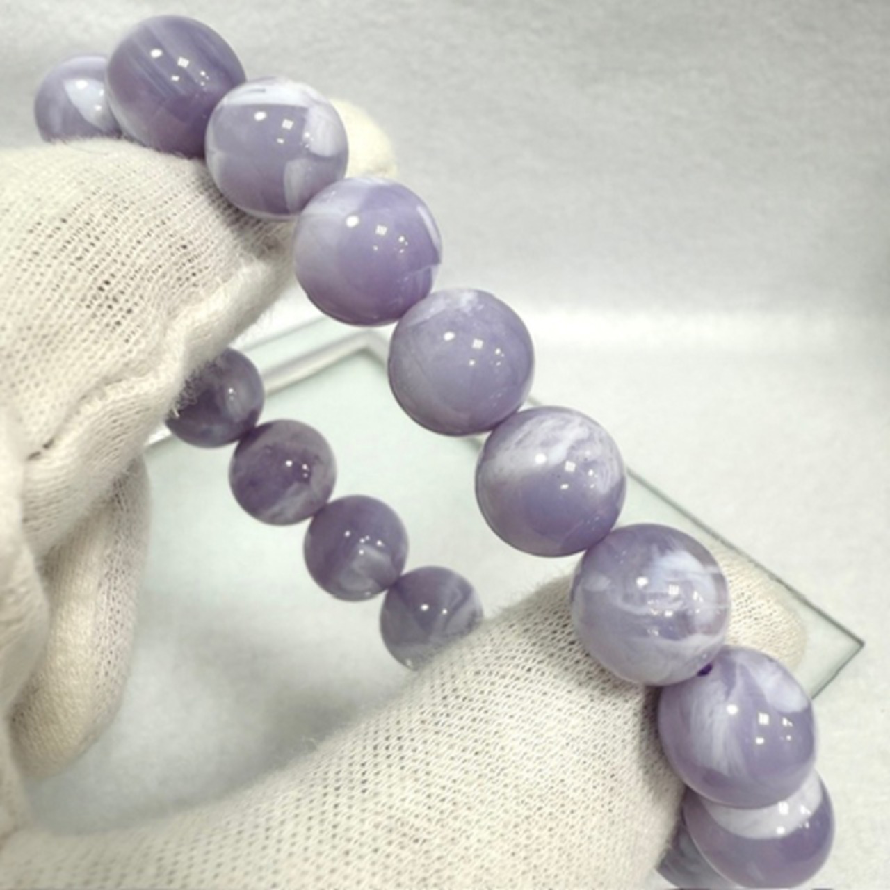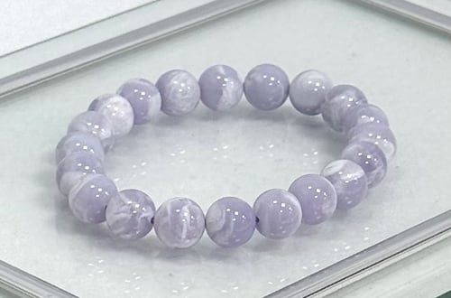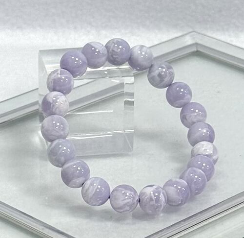 アメリカ産、約9.5〜10ミリ、水晶とパープルフローライトが混ざり合った天然石で白とパープルカラーのマーブル模様がなんとも言えない神秘性を宿しています