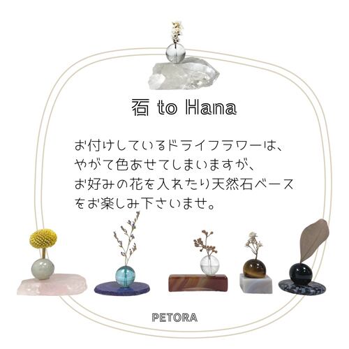 【 商品詳細 】◆商品コード PIH-145 ◆商品名 石 to HANA ◆アイテム ハート マダガスカル産ローズクォーツ(スターローズ) アゲート(瑪瑙) ◆価格 ¥1,650- ◆サイズ 透明クリスタルボックス 60×60×60ミリ / 石 to HANA 約47×36×38ミリ 約20g ◆備考 * お付けしているドライフラワーはやがて色あせてしまいますが、お好みの花を入れたり天然石ベースをお楽しみくださいませ。*お客様のお手元へお届けの際は天然石ベースにお付けしていますドライフラワーは損傷防止のため分けてお包みしております。 開封後、お付けしていますドライフラワーやお好みのお花などを天然石ベースに挿して独自の自然のアートをお楽しみくださいませ。*お付けしていますドライフラワーは販売品ではございません。*天然石ベースにはお水などは注がないように願います。