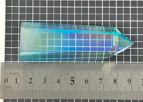 アクアオーラは透明な水晶にイオン化した金を真空蒸着させる手法を用いて作られます。