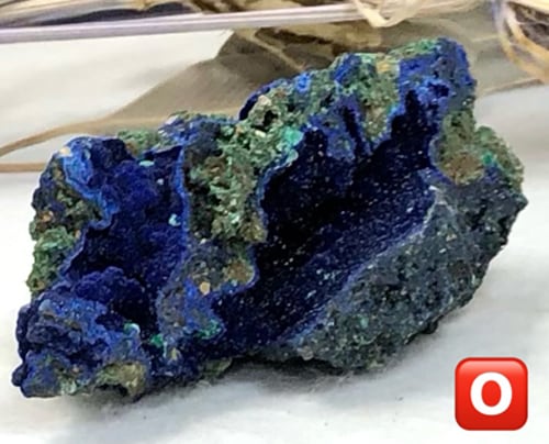 煌びやかな結晶がとても綺麗で、濃い青とマラカイトや所々クリソコラの緑がとても美しいです♪