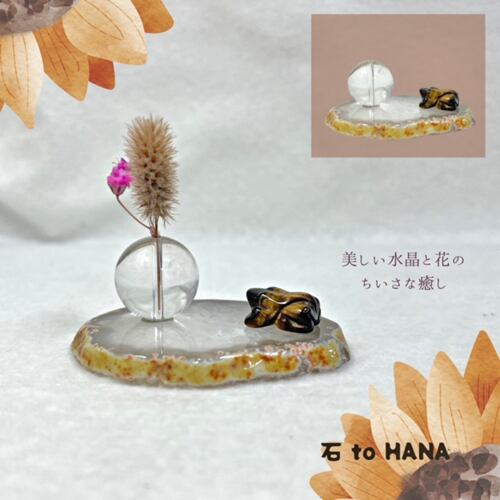 天然石 花 ドライフラワー パワーストーン 水晶 アゲート 瑪瑙 めのうスライス タイガーアイ カエル かえる 石toHANA 癒し インテリア 母の日ギフト 母の日