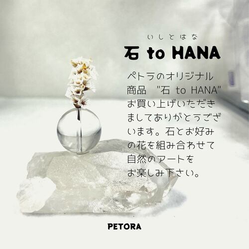 【 商品詳細 】◆商品コード PIH-161 ◆商品名 石toHANA ◆アイテム 水晶 アゲート(瑪瑙) ◆価格 ¥2,970- ◆サイズ 透明クリスタルボックス 60×60×60ミリ / 石 to HANA 約57×43×48ミリ 約36g ◆備考 * お付けしているドライフラワーはやがて色あせてしまいますが、お好みの花を入れたり天然石ベースをお楽しみくださいませ。*お客様のお手元へお届けの際は天然石ベースにお付けしていますドライフラワーは損傷防止のため分けてお包みしております。 開封後、お付けしていますドライフラワーやお好みのお花などを天然石ベースに挿して独自の自然のアートをお楽しみくださいませ。*お付けしていますドライフラワーは販売品ではございません。*天然石ベースにはお水などは注がないように願います。