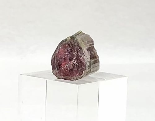 グリーンとピンクの二層からなるバイカラートルマリンの原石です