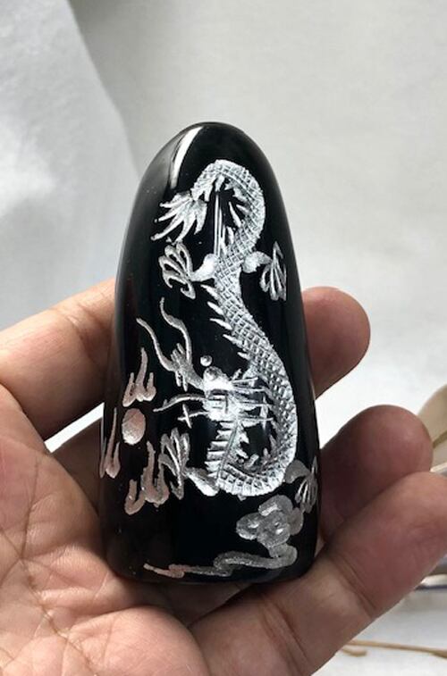 銀彫り五爪龍彫刻置物です♪